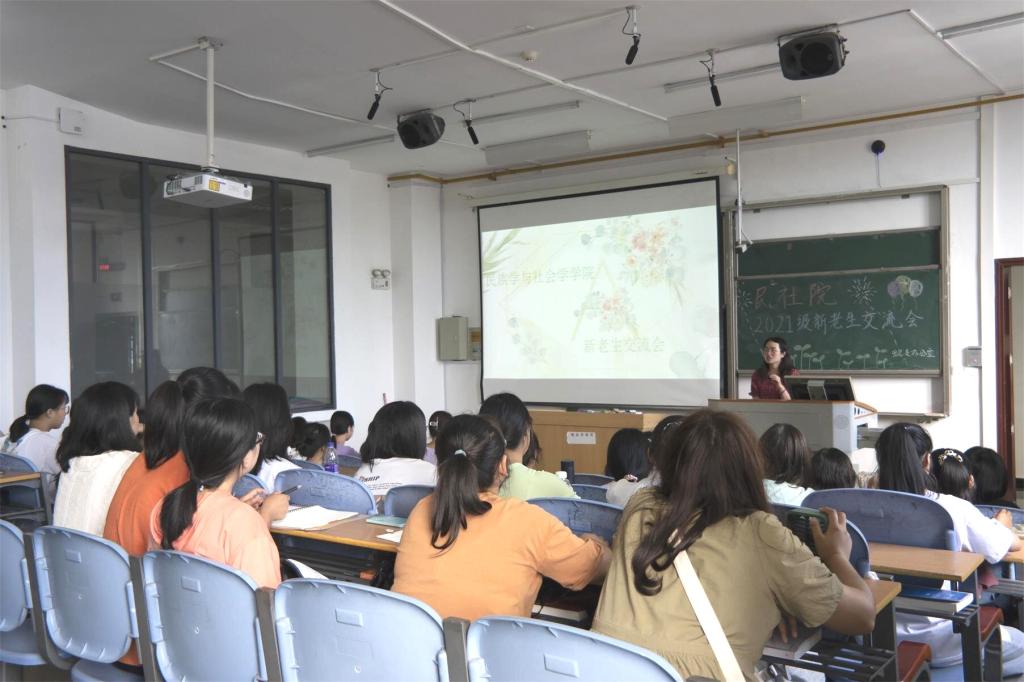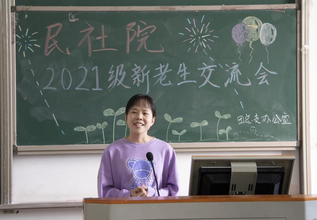 本网讯(记者 周树洋/文 向丽华/图)为加深我院新生的社会学专业认知,全面了解大学生活,9月8日,我院团总支办公室在修远楼5A501教室举行新老生交流会。我院团总支书记熊霞主持会议,大四优秀学生代表:余帆、胡瑞洋、肖洪、樊玉娟为交流会发言人。我院全体大一新生参加本次活动。