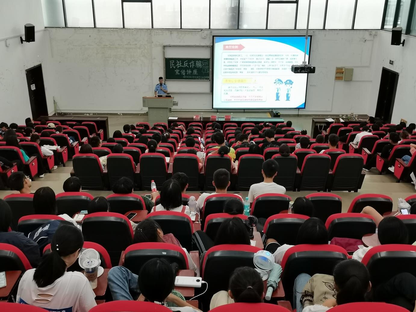 本网讯(记者 周树洋/ 肖欣 向丽华/)为加深我院生对电信诈骗手段的了解,提高自身防范意识,9月17日上午,我院团总支素质拓展部在修远楼5B403学术报告厅开展防电信诈骗讲座土桥坝派出所反诈宣传员罗浩警官受邀担任主讲人,团总支书记熊霞应邀出席本次活动,我院大一、大二全体学生参与聆听。