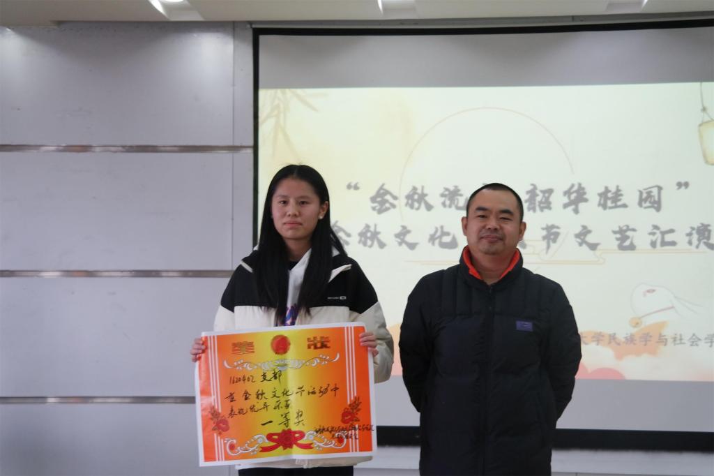 本网讯(记者 陈慧超/文 陈诺 陈舒琦/图)为提高我院学生文化素养,丰富其课余生活,12月3日,我院团总支办公室于德智楼三楼多功能会议厅举办以“金秋流韵,韶华桂园”为主题的金秋文化艺术节活动。我院大二班主任冉红芳老师、社会学专业负责人周书刚老师、大一班主任廖正丽老师、团总支书记熊霞老师受邀出席此次活动并担任评委。大一大二全体学生参加本次活动。