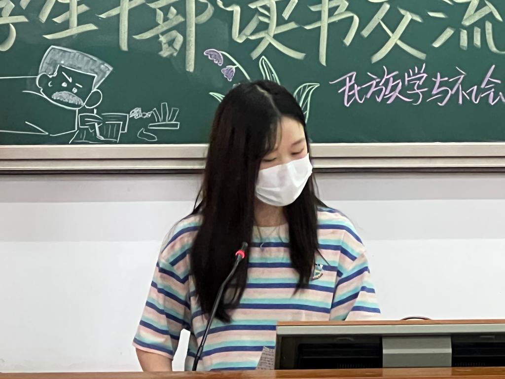活动伊始,杨洪林老师致开场词,围绕阅读的重要性和学生干部如何通过阅读提升自我两方面展开讲述。他以升学面试为例,指出阅读经典书籍对个人知识储备、未来工作高度均有重大意义。同时,他强调学生干部应从书籍中提高文化修养,塑造健全人格,成为学生工作的得力助手。最后,他提议长期举办此类文化活动,并与社会调研相结合,指引学生干部深入发掘自身潜能。