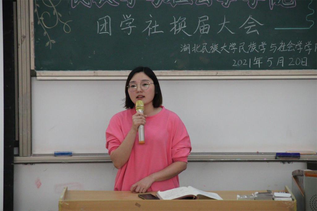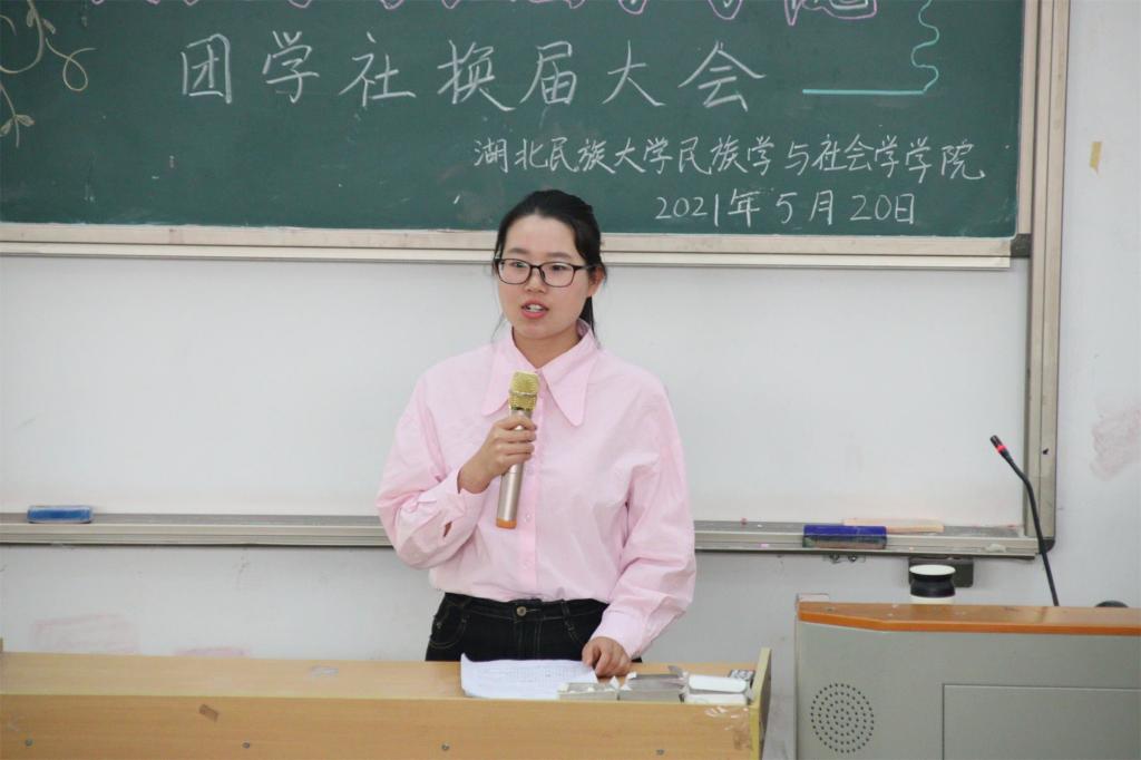 本网讯(记者 周树洋 张瑶/文 鲁心雨 刘睿/图)为更好的打造“奋进”、“智慧”、“健康”、“创新”“和谐”五个民社,培养德才兼备、团结友爱的学生干部队伍,5月20日,我院在修远楼5B404学术报告厅举行我院第六届学生干部换届大会。我院学生科科长张冰,团总支书记熊霞,学生科老师顿山受邀出席本次活动,我院团学社组织全体成员和大一大二各支部代表参与本次活动。