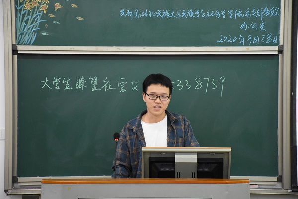本网讯(记者 向春霞/文 张莹/图)为增进新生对我院团学社各部门的了解,对接下来的招新工作做好准备,9月27日,我院在修远楼5A502教室成功举办2020年团学社骨干见面会。大二大三团学社干部,全体大一新生参与本次活动。