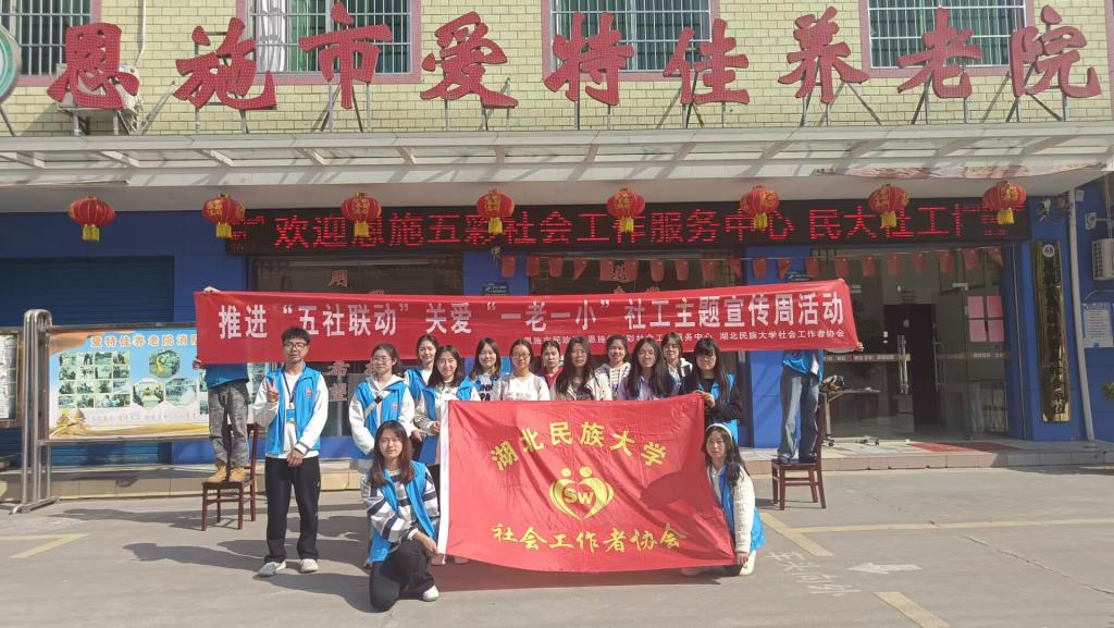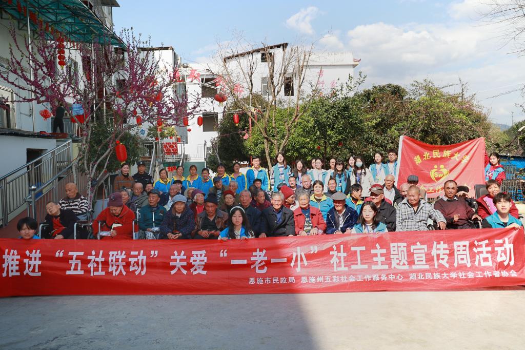 本网讯(记者 谌海容 见习记者 黄楠萍/文 姚婷 黄显为/图3月30日下午我校社会工作者协会联合恩施市民政局恩施州五彩社会工作服务中心于恩施市龙凤坝镇爱特佳养老院及白杨坪镇中心小学开展推进五社联动,关爱一老一小”为主题的志愿服务活动我院共有16名志愿者参加本次活动。
