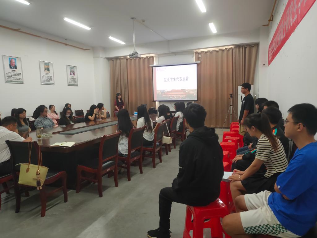 会议伊始,班主任张雯通报了毕业生目前的就业情况,随后分别邀请了本届已就业毕业生和往届毕业生分享个人的求职经历,提供求职经验,接着学生科科长张冰分别从毕业生档案、应届生身份、就业材料、就业核查等四个方面展开培训,进一步明确毕业前、毕业后需要注意的事项。