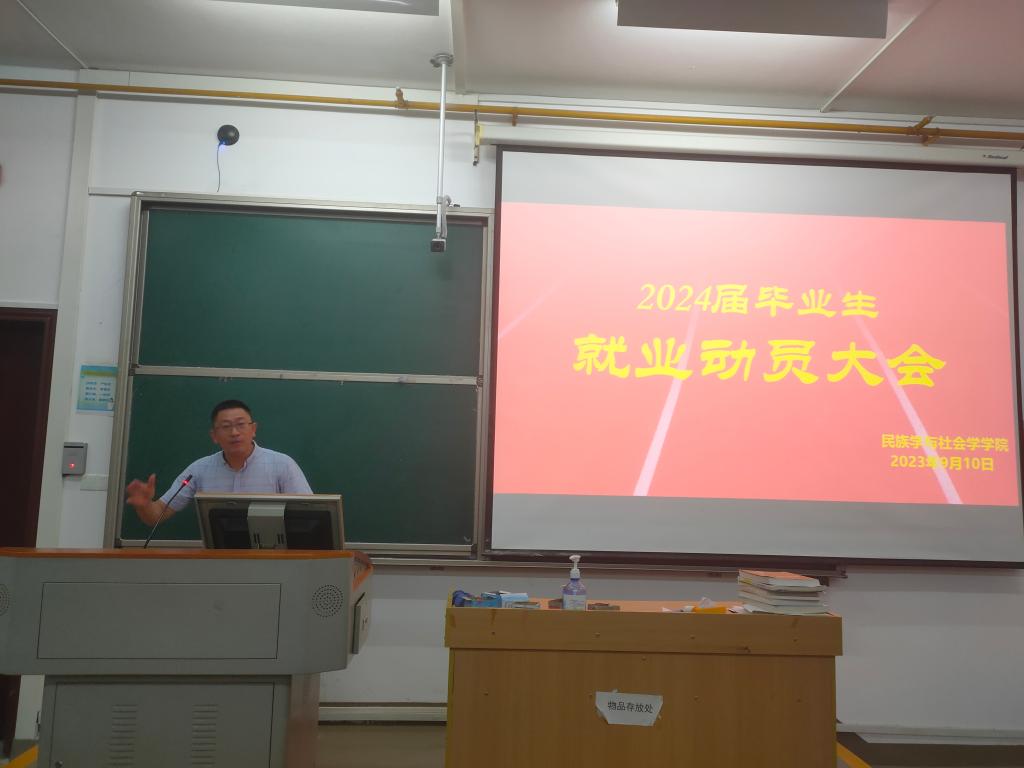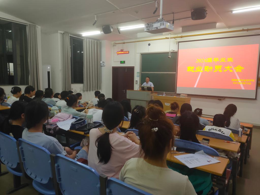 (本网讯 张冰)2023年9月10日,我院在5A505教室召开2024届毕业生就业动员大会,党总支书记曹召胜出席会议,2024届全体毕业生及班主任参加会议。动员大会由学院学生科科长张冰主持。