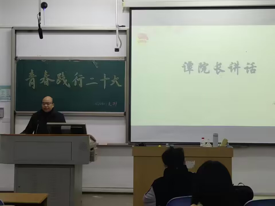 本网讯(记者 谌海容/文)2月26日下午,我院各班团支部在晚点名教室开展以“青春践行二十大”为主题的班会活动。各班团支部书记担任主持人,学院全体领导班子、思政课教师、辅导员、各班班主任受邀出席此次活动。