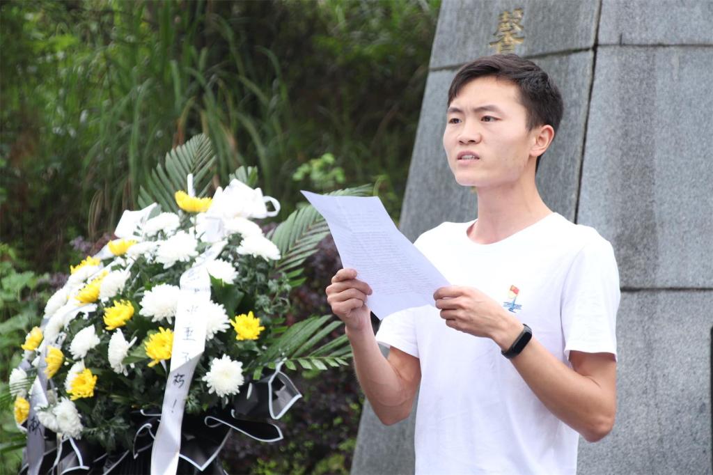 活动在曹书记为烈士献花中拉开序幕,学生党员陈礼双同志简述烈士事迹,然后举行党员宣誓仪式。紧接着,预备党员代表康锐同志与正式党员代表姜坤同志分别讲话,号召青年学生要坚持学习,坚定理想信念,旗帜鲜明讲政治,提高政治素养和道德修养。最后,党总支书记曹召胜为预备党员佩戴党徽、分发党章并讲话,他对两位同志的讲话表示肯定,认为“为党育人,为国育才”中的人便是革命事业、中华民族伟大复兴事业的接班人,希望党员将政治素养的学习作为一生的功课,茁壮成长。