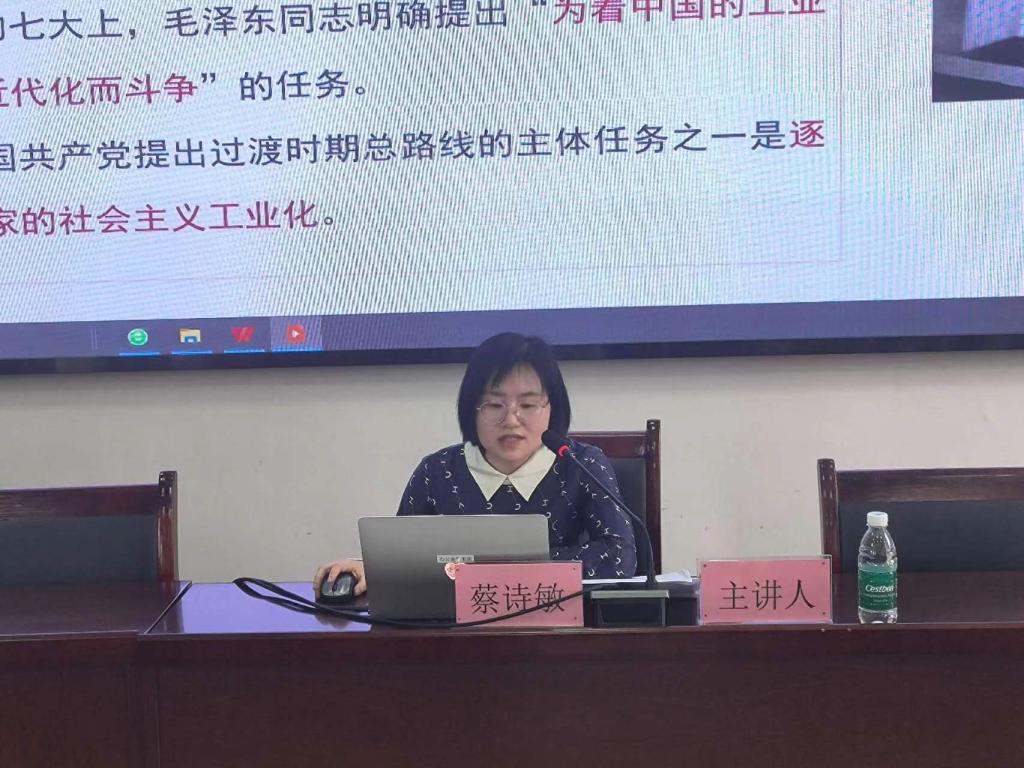 蔡诗敏此次宣讲主要从“坚持社会主义方向贯穿中国式现代化探索和确立的全过程”、“社会主义性质是把握中国式现代化理论的核心线索”、“推进和拓展中国式现代化必须坚持中国特色社会主义”和“聚焦主责主业推进中国式现代化”等四个方面进行展开。蔡诗敏的宣讲理论内涵丰富、选用案例生动,宣讲现场师生参与度高,纷纷表示深受启发。
