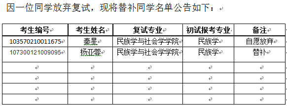 365电子娱乐官方网站民族学与社会学学院2020年硕士研究生招生复试名单(替补第二批)