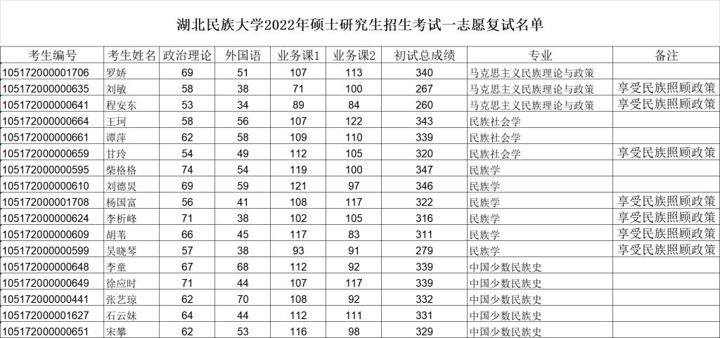 365电子娱乐官方网站2022年硕士研究生招生考试一志愿复试名单