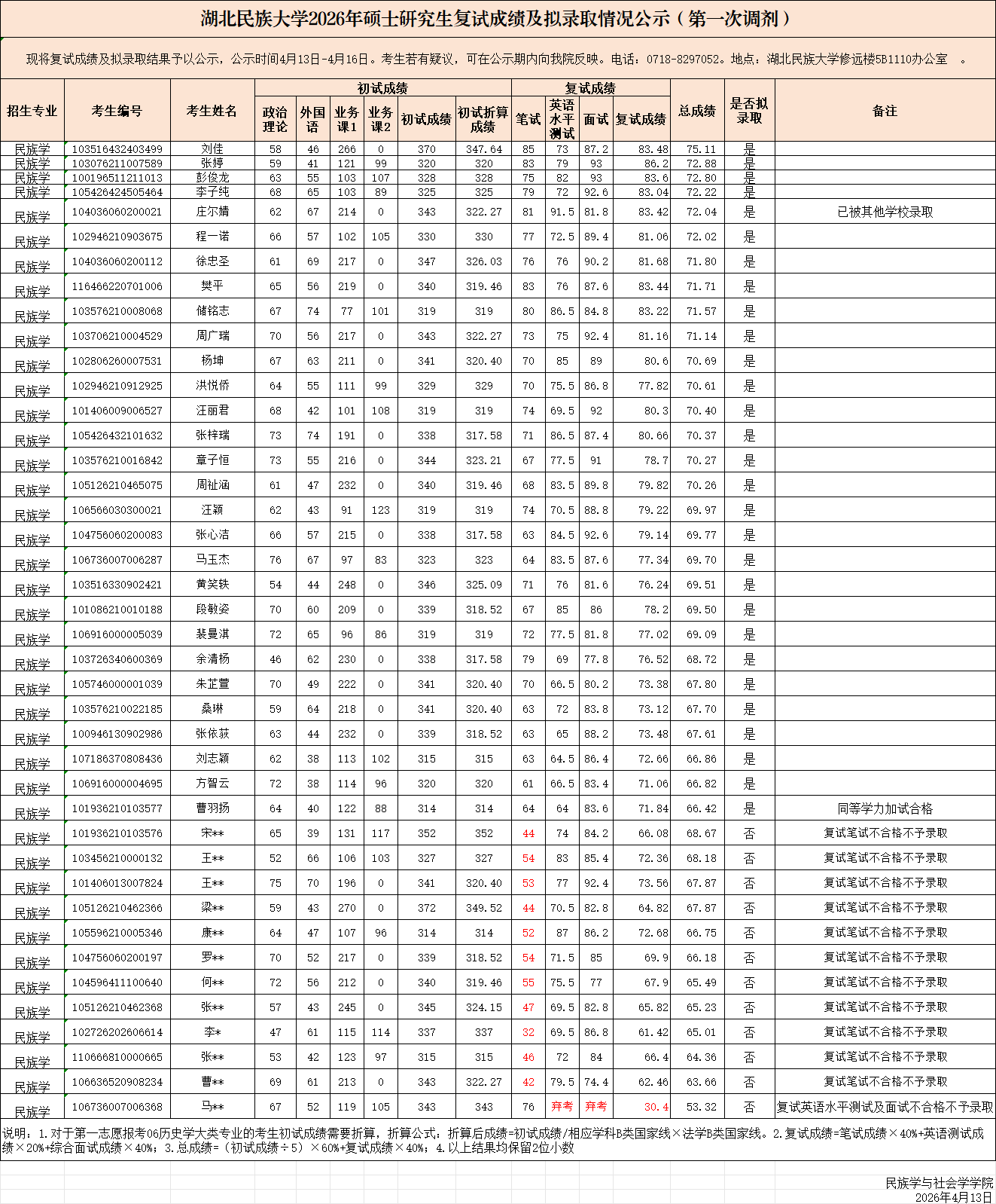 365电子娱乐官方网站2026年硕士研究生复试成绩及拟录取情况公示(第一次调剂)