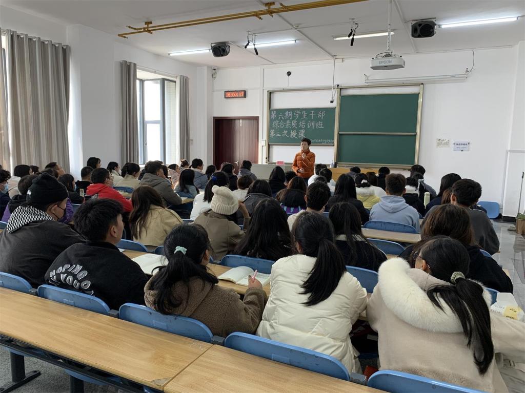 本网讯(见习记者 谌海容 陈慧超/文 陈文宇 肖欣/图)为提升学生干部综合修养,加强我院学生干部队伍建设,11月12日,我院在修远楼5A503教室成功开展主题为“以情交流,用心交际”的第六期学生干部综合素质培训班第三次授课。我院副院长唐卫青受邀出席本次活动并担任主讲人,我院全体新生干部参加本次活动。