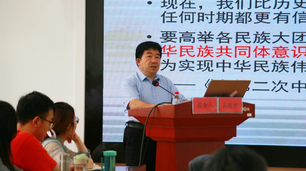 王延中研究员是中国社会科学院民族学与人类学所所长、中国民族学学会会长中国社会科学院大学教授、博士生导师,中央统战部、国家民委等部委的决策咨询委员,国家“万人计划”哲学社会科学领军人才。王教授讲座主要从铸牢中华民族共同体意识重大论断的提出与意义、当前民族领域若干理论认识的分歧、加强新时代民族理论研究的几点思考三个方面展开系统梳理了习近平总书记提出铸牢中华民族共同体意识这一原创性重大论断的历史过程,阐明了铸牢中华民族共同体意识的伟大意义,介绍了铸牢中华民族共同体意识成为民族工作主线之后对民族学研究、民族工作开展提出的新要求,以及新时代民族理论的热点和方向。