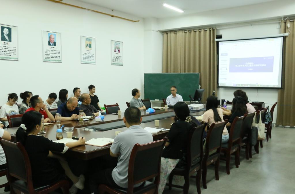 本网讯(李彦颉)2021年6月10日晚间,中央民族大学林继富教授应邀来我院进行学术交流,并在修远楼5B1205室举办了主题为“空间赋能:融入乡村振兴的文化生态保护区建设”的学术讲座。本次讲座由我院杨洪林教授主持,民族学学科相关教师及硕士研究生参加。