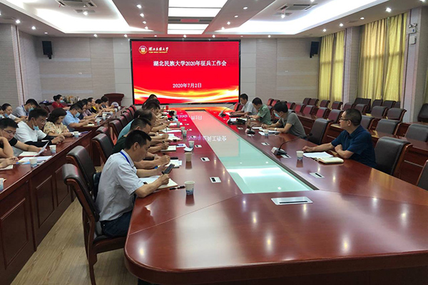 本网讯 (通讯员 曾飞翔)7月2日下午,我校2020年大学生征兵工作会在行政楼三号会议室召开。学校党委常委、副校长祝建波,恩施州军分区国防动员处副团职参谋朱柳等领导出席会议并讲话,各二级学院党委(党总支)书记、学生科长及辅导员参加会议。会议由武装部部长郭智斌主持。