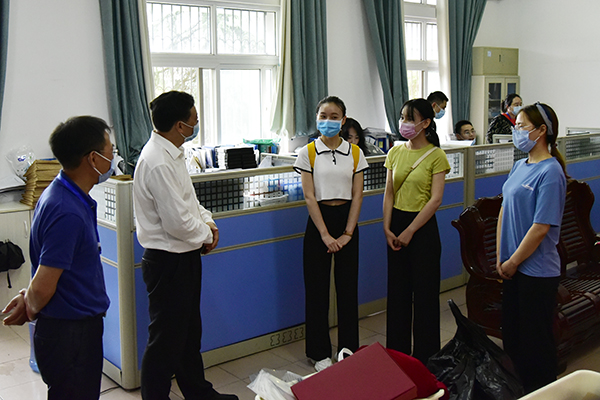 本网讯 6月22日,我校首批毕业生返校的第二天,党委书记吴建清带领校办、学工处、校团委等单位负责人到各二级学院走访,看望慰问毕业生,了解各学院毕业生工作开展情况。