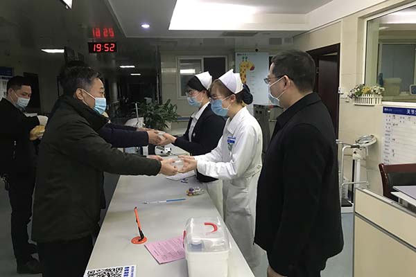 在民大医院,顿祖义一行走进临床科室,看望慰问坚守在岗位一线的医护人员,为他们送上香甜、可口的汤圆,对他们舍小家、顾大家,坚守工作岗位、精心呵护患者表示感谢,并向他们及家属致以节日的祝福。顿祖义详细询问了医护人员的工作和生活情况,了解医院疫情防控、病人收治及值班安排情况等。顿祖义一行还深入病房看望慰问了在院治疗的教职工、危重困难病人,了解他们的治疗及康复情况,向他们致以诚挚的问候和美好的祝福。