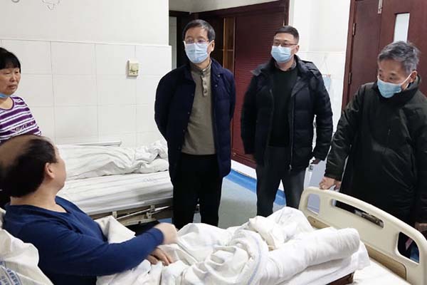 顿祖义、祝建波看望在院治疗的教职工