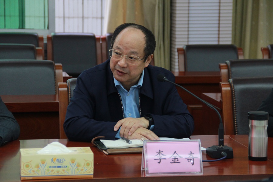 李金奇讲话。他表示很高兴来到我校交流学习,并希望两校能够加强“高校智慧党建”“学校党建和机关党建”“高校民族宗教”“高校新媒体建设”工作的交流,共建教育基地,培养更多高质量人才。