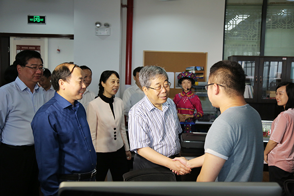 时任教育部党组书记、部长陈宝生(中)到我校考察,与我校师生亲切交谈