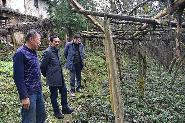 向前进(中)、汪兴平(右一)查看黄连生长情况