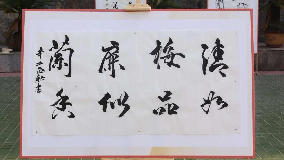 本次书画展现场展出楷书、行书在内的书法作品及工笔画、水墨画等在内的绘画作品共计56幅。种类繁多、各具特色,吸引了众多师生驻足观看。其中,法学院夏万婧的一篇《千字文》结体端庄,师古而不泥,一笔一划写出风清气正;美术与设计学院李佳蔓的作品《廉》,以细致的笔墨勾勒草鞋的朴素,意在劝诫众人以朴为质,以洁当先。