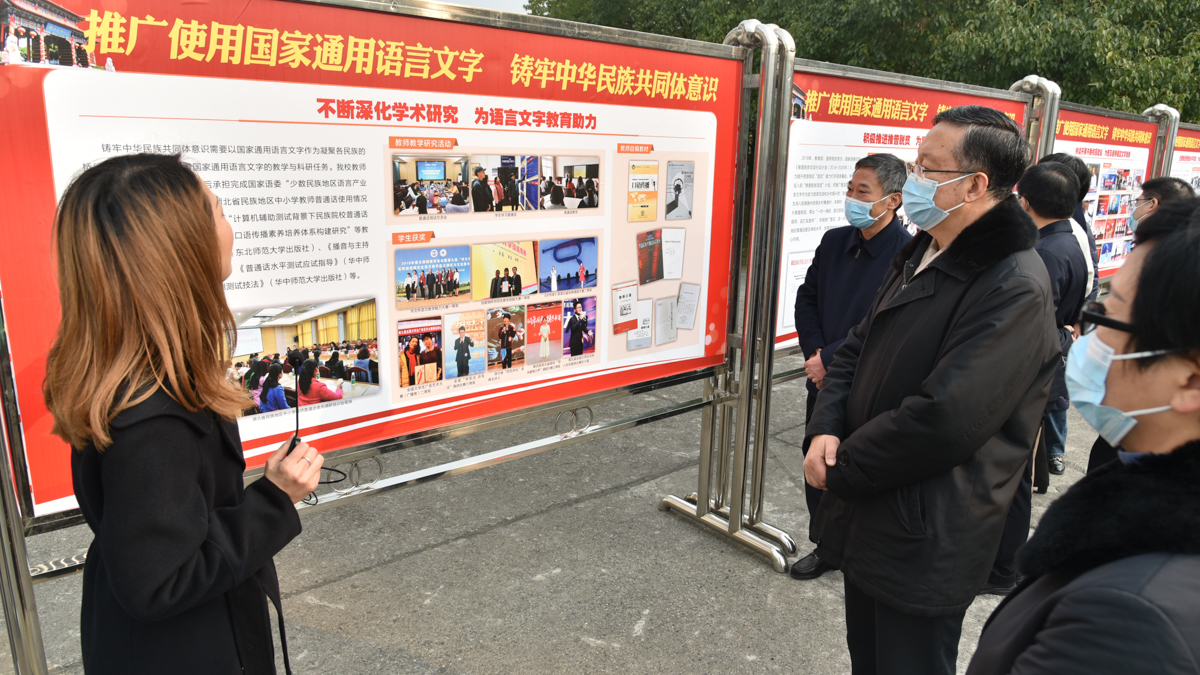 12月9日,教育部副部长、国家语委主任田学军到我校调研指导语言文字等工作,强调要紧紧围绕铸牢中华民族共同体意识这根主线,扎实开展语言文字工作,并勉励我校积极创建国家语言文字推广基地。