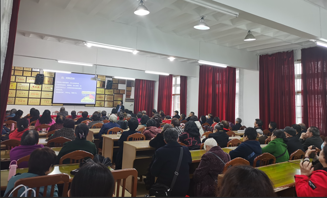 胡建华教授结合机关干部职工及中老年人等日常的工作生活实际,针对性地普及了心血管突发事件的相关知识,提高广大教职工在心血管突发事件中的自救互救能力。讲座结束后,随行的心血管内科慢病小组心在心血管内科护士长饶春燕带领下,为部分退休干部和职工进行了血压及血糖等常规体检和健康指导。