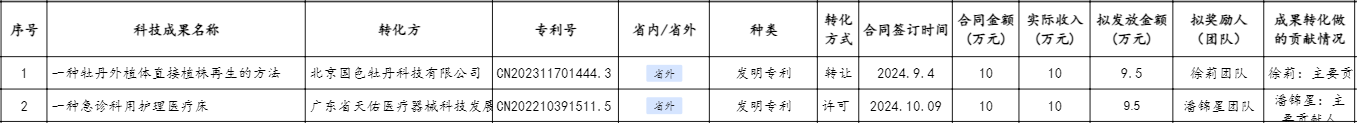 2024年成果转化现金奖励信息(第十一批)公示-2024.11.21