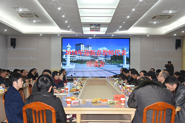 1月18日,我校在行政楼3号会议室召开了以“新时代、新作为、新发展”为主题的2018年迎新春教师代表座谈会,党委书记吴建清,校长顿祖义,党委副书记、副校长汪兴平与40余名新增省级专家、2017年访学归国博士、新增引进博士等教师代表欢聚一堂,共叙发展。会议由汪兴平主持。