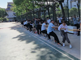 拔河比赛更是精彩,在比赛中,整支队伍跟随指挥同学的口令,同时朝一个方向使劲,拧成一股绳。场边的同学不断的加油呐喊,为在赛场拼搏的同学和两位老师加油打气,呐喊声此起彼伏。集体的努力,众人的配合,在助威声中化作无穷的动力。一根拔河绳,凝住每一位同学青春拼搏的风采,连接着智能学院师生之间的满满情谊!