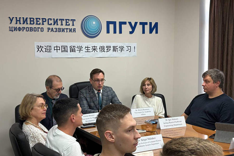 瓦迪姆·鲁日尼科夫在视频致辞中感谢中方合作伙伴的远见与付出,并勉励首届学生作为项目先驱,珍惜机遇,砥砺前行,开启变革性的求学旅程。尼古拉·巴利科夫表示,本项目是共建“数字丝绸之路”的重要实践,核心在于培养学生成为精通技术、具备跨文化理解与协作能力的未来领袖。他寄语学生超越技术学习,积极拥抱跨文化体验,在差异中寻找创新灵感,成为共建“数字丝绸之路”的卓越人才。