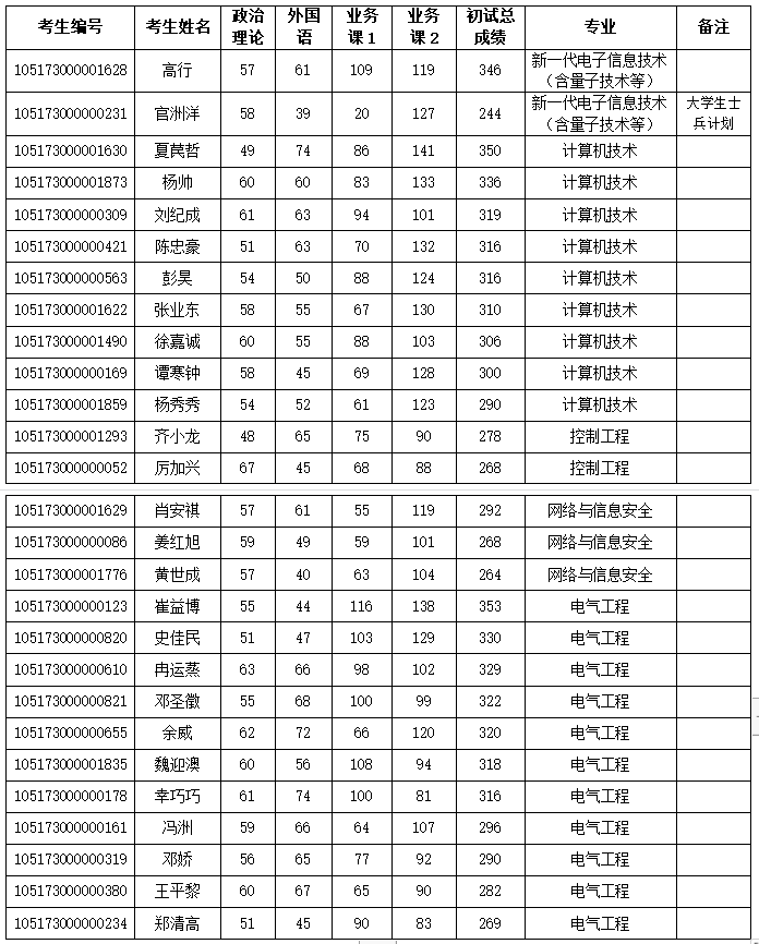 365电子娱乐官方网站智能科学与工程学院2023年硕士研究生招生考试一志愿复试名单