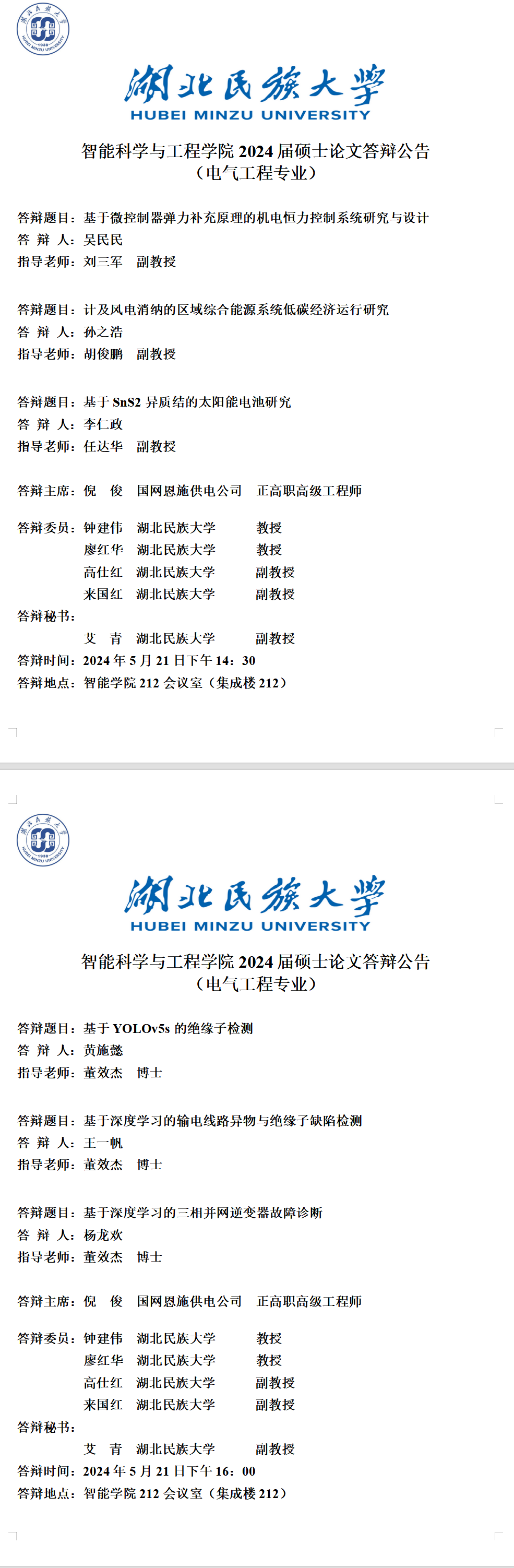 : 智能科学与工程学院2024届硕士学位论文答辩公告(四)