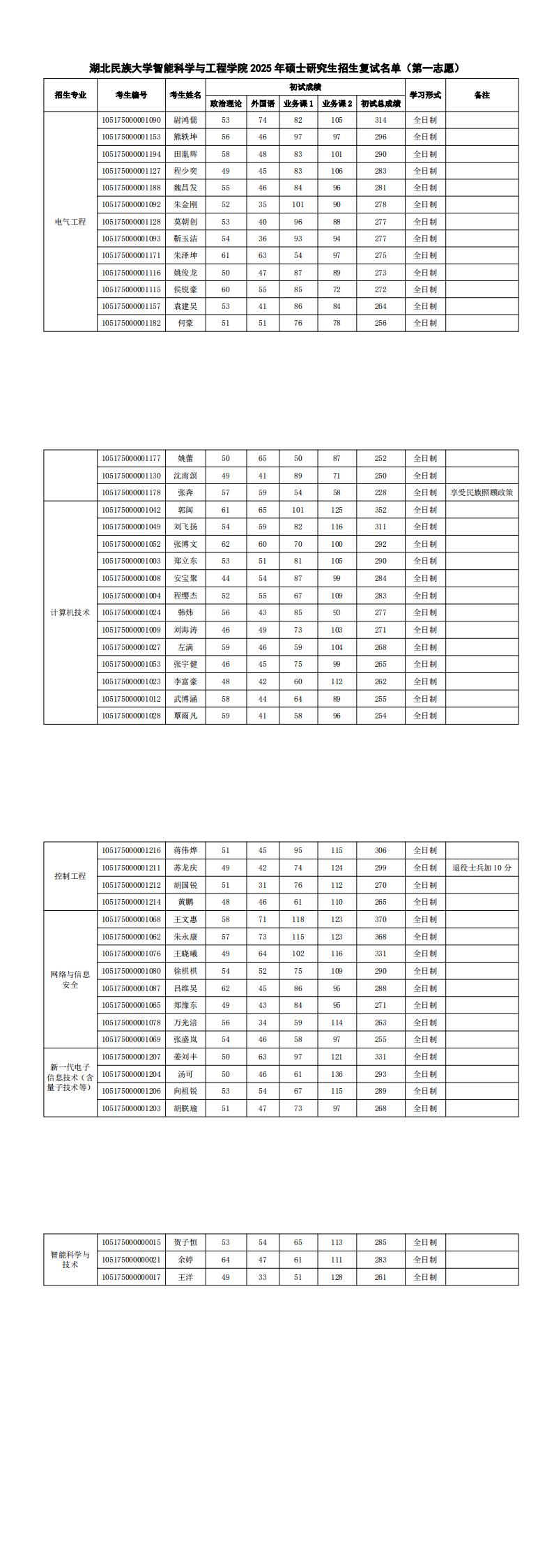 365电子娱乐官方网站智能科学与工程学院2025年硕士研究生招生复试名单(第一志愿)