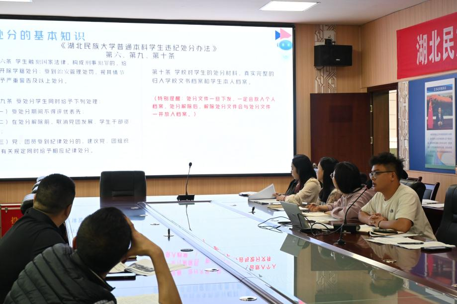 2024年5月5日,学院通过班主任例会,组织全体班主任开展了《365电子娱乐官方网站学生违纪处分办法》专题学习,会议由学工办主任刘薪主持,辅导员郑扬帆主讲,学院党委副书记汪涛、学工办全体辅导员、全体班主任参加了本次学习。