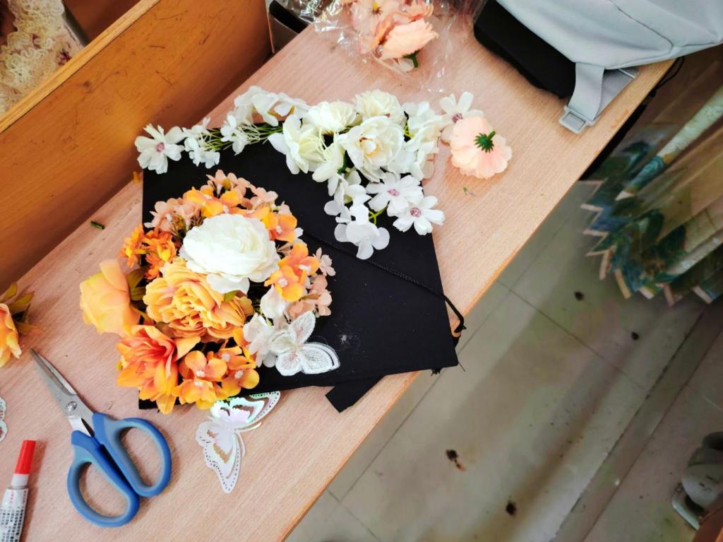 簪花,作为中国古代的一种传统习俗,寓意着美好、吉祥和前程似锦。学士帽簪花活动中,毕业生们在花朵素材中根据自己的喜好来装饰学士帽,也寓意着毕业生们将带着学院的祝福奔向属于他们光明的未来。