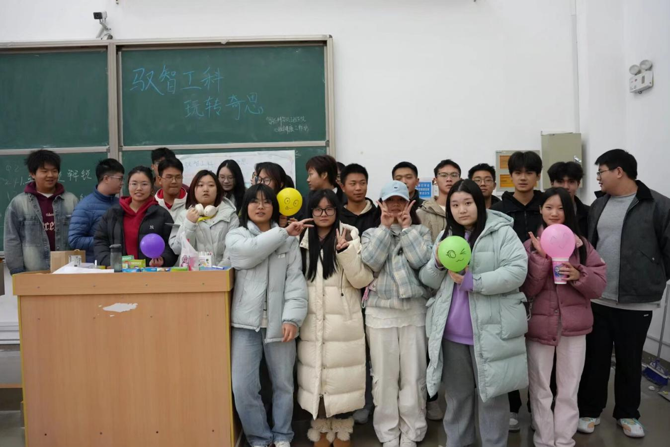 活动期间教室秒变“智造游乐场”:咔嚓拆鲁班锁声此起彼伏,橡皮筋“咻”地划破空气正中靶心,气球摩擦头发“噼啪”带电吸起雪片般的纸片,欢呼与快门闪光交织,青春压力在指尖烟火中瞬间清零。颁奖环节,获奖代表高举作品合影留念,笑声与快门闪光交织,为活动画上圆满句号。