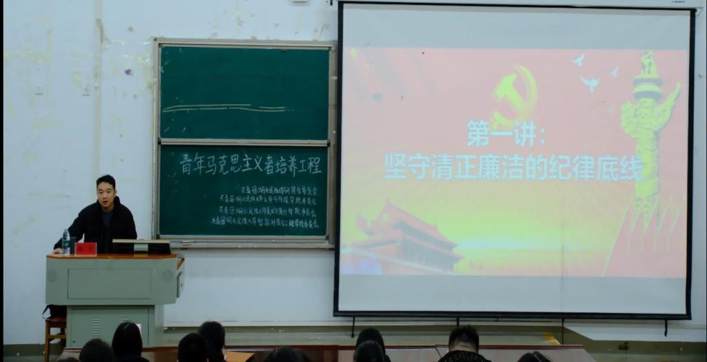 典礼结束后,首期专题授课以“坚守清正廉洁的纪律底线”为核心主题。由赵宇老师授课,授课紧扣青年成长规律,从纪律规范内涵、作风建设要求等维度层层展开,将典型案例剖析与理论深度阐释有机结合,引导学员树立正确的价值观,筑牢思想防线,勉励大家在日常学习生活中严于律己。学员们认真聆听、深入思考,深刻认识到廉洁是青年马克思主义者的立身之本。