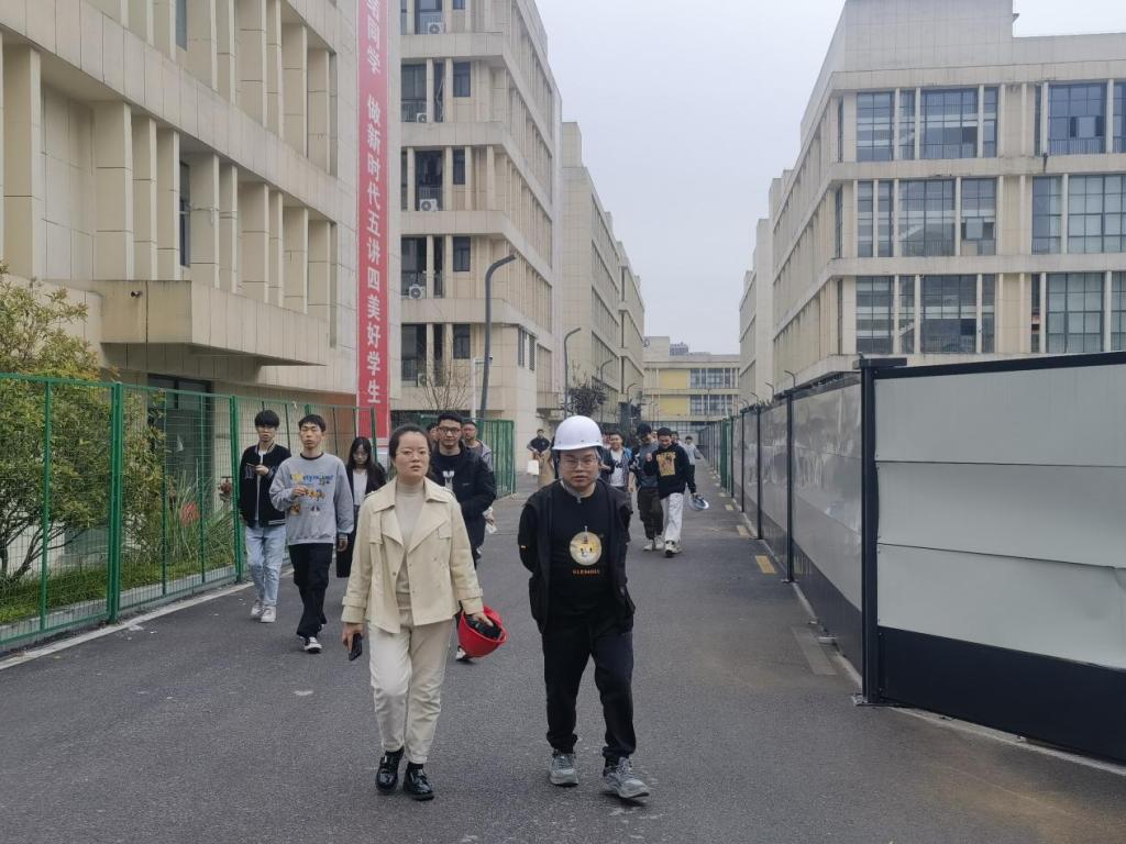 随后,贾经理邀请了部分学生作为代表,进入施工区域进行了实地参观。