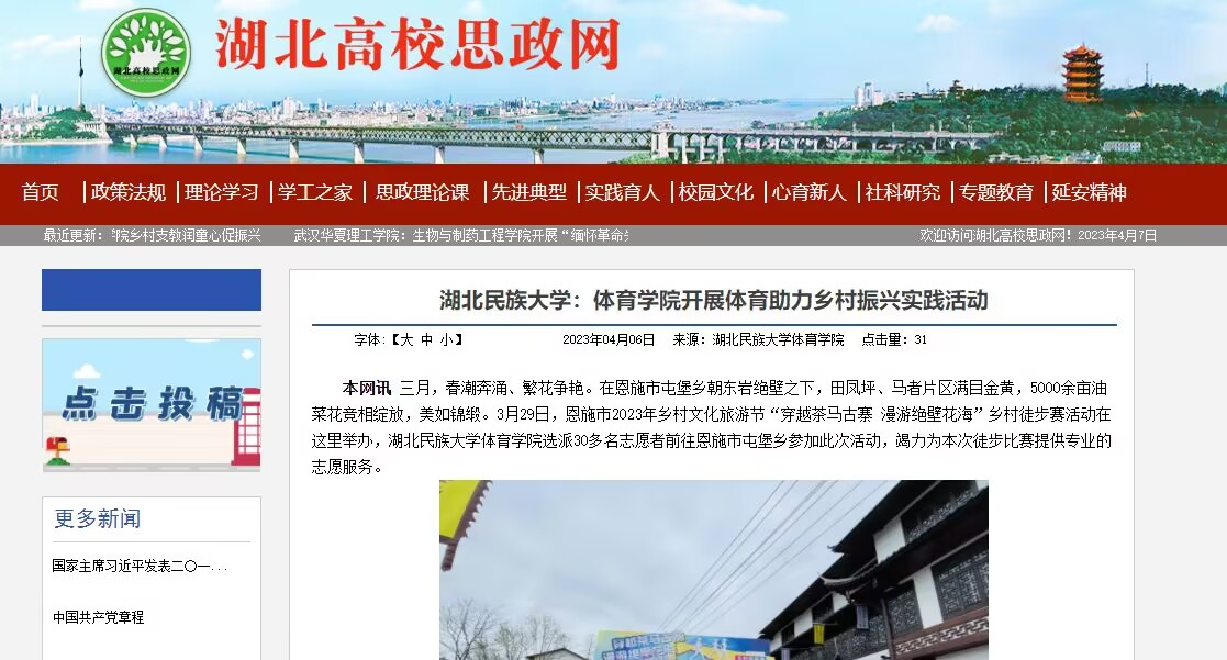 【湖北高校思政网】365电子娱乐官方网站:体育学院开展体育助力乡村振兴实践活动