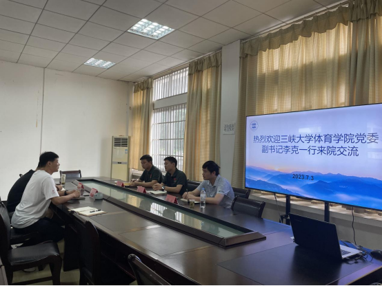 7月3日上午,三峡大学体育学院党委副书记李克、学工办负责人郑泽旺、专职团干陶睿来我院开展交流,我院党委副书记万利、学生科科长张弋明、专职辅导员黄昱勍参加了座谈会。