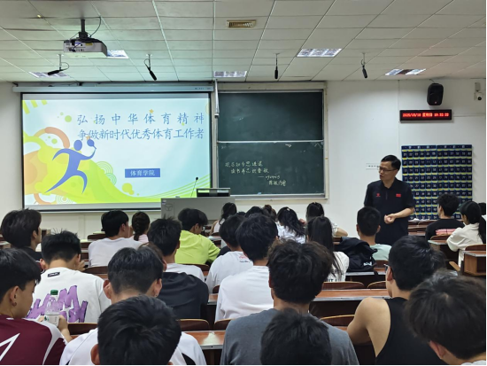 首先,赵书记从三个层面为同学们讲解中华体育精神的内涵。他指出,中华体育精神是中国精神的生动缩影,涵盖“为国争光、无私奉献、科学求实、遵纪守法、团结协作、顽强拼搏”等核心内涵。在文化渊源上,中国文化为体育精神提供深厚底蕴,体育精神则是中国文化在现代社会的传承彰显。时代价值方面,其能振奋民族精神、增强民族认同感,是体育事业与社会文明进步的重要推力,也是国际交流中传递友谊、和平理念的桥梁。