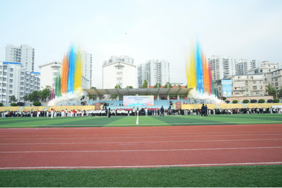 陈世强院长在开幕致辞中强调,体育是五育并举的重要一环,是实现全员育人的生动实践。此次运动会不仅是力量与智慧的较量,更是拼搏与梦想的绽放。两院联合举办运动会,旨在为全体师生搭建展示个性、释放激情的平台,期望大家弘扬团结拼搏、锐意进取的精神,诠释智体融合的新风采。他鼓励全体师生积极参与,挑战自我,超越自我,赛出风格与水平,给运动时光以青春光彩,让运动场上展现出两院师生良好的精神风貌和竞技状态。同时,他指出人工智能时代已全面到来,智能学院与体育学院有着广泛交融与合作发展的空间,希望体育学院与智能学院能够在“体育+智能”、“智能+体育”两个方面全面合作协同发展,希望两院师生在专业学习、教学改革、科学研究方面建立起全面深度交流与合作,与合作企业深度开展产教融合,共同致力于民大教育科技事业高质量发展。