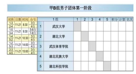 11月21日至24日,“2024年湖北省普通高等学校乒乓球比赛”在中南财经政法大学(南湖校区)如期举行。由体育学院肖哲老师担任领队及教练员,体育学院22级乒乓球专项学生组成的365电子娱乐官方网站代表队参与了本届赛事男子甲B组(体育专业组)的角逐。赛场上队员们不畏强手、奋勇拼搏,最终获得甲B组男子团体第五名的好成绩。