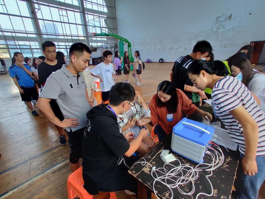 本次研究于7月底开始启动,经过1个多月的准备时间于9月12日正式开始。9月12日,运动干预前部分指标基础值测试(免费测试)在校篮球馆进行。因目前学校尚处于疫情防控期间,所以研究团队在测试前经过多次会议制定了严格的防控方案,并在测试时分流进行(每批不超过20人)。本次测试主要依托体育学院新建的运动生理学实验室(2018年体育学院获300万中央财政经费,经费用于试验室的建设)进行,测试指标有无创微循环指标、经皮氧分压、体成分、血压、心率以及各项身体素质等,并在测试后为学生提供一份个人体质评价报告,让学生了解自身的身体情况。此外,下周末还将对学生进行各项血液指标检查。