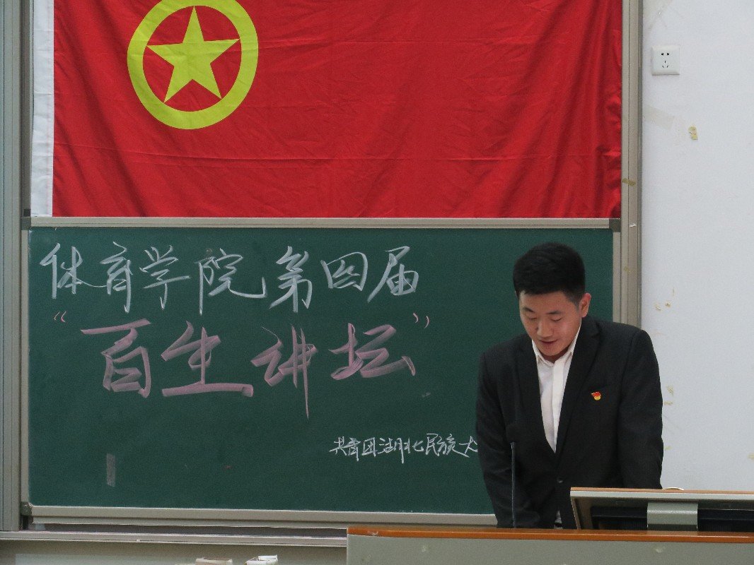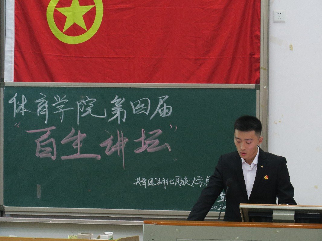 大会最后,学工处谭婷婷老师进行活动总结,她表示:“本次百生讲坛所提及的抗疫的担当与奉献、创业的奋斗、校园生活的努力、学生干部的锤炼、家国情怀的培养,都是我们青春的故事,彰显了我们当代大学生的青春风貌,展现了民大人的风采,同时向外界展示了体育学院优良的精神风貌,这些都是需要我们去学习的。希望同学们学有所获、学有所思、学有所用。”