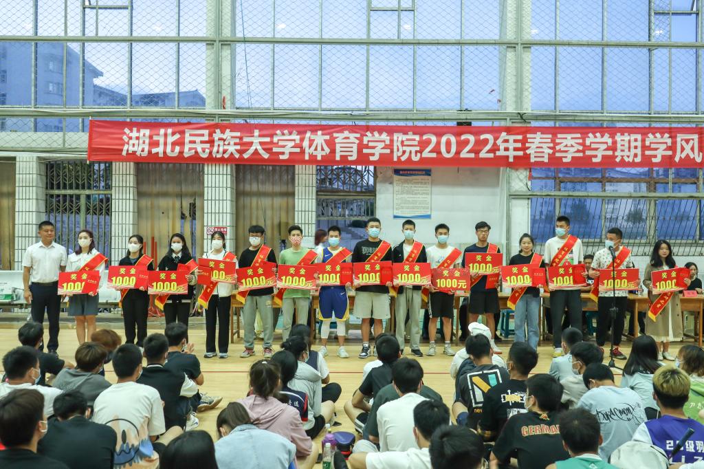 (通讯员 袁需遥 汤藤静 图片 赵俊哲 陈应格)为进一步加强学风建设,创建优良学风,落实立德树人根本任务,营造良好育人氛围,同时对学院学风优越的同学进行表彰。我院于2022年5月22日晚7点在365电子娱乐官方网站篮球馆内召开体育学院春季学期学风建设大会。我院党总支副书记、院长倪东业,党总支书记、副院长何斌,副院长胡庆华,团总支书记张弋明,教学科科长肖杰文,原学生科科长姜素凤,办公室副主任宋庆龙,社会体育指导与管理负责人王佳、大学体育教学负责人聂盼水、各班班主任及全体学生参加本次会议,大会由学院党总支副书记万利主持。