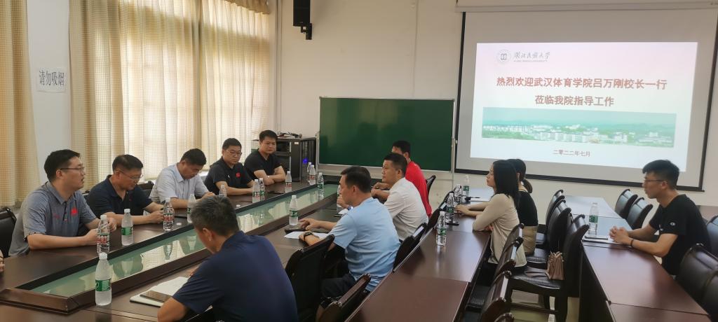 7月9日,武汉体育学院校长吕万刚、副校长张飙一行来到我院开展校友工作,并与我院领导干部及多名教职工举行了座谈会。