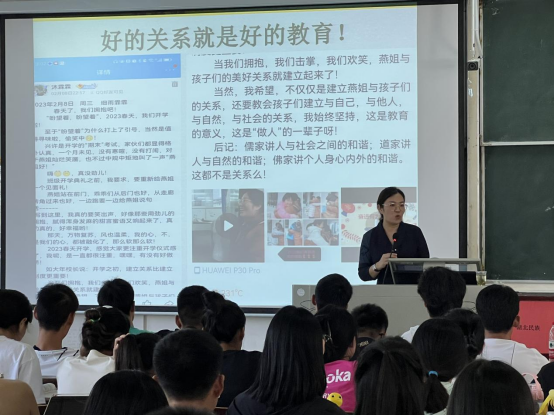 9月8日上午,恩施市小渡船中学燕娥老师在德智楼9A210开展了主题为“爱到细节处,做有温度的教育”的师范生培训。